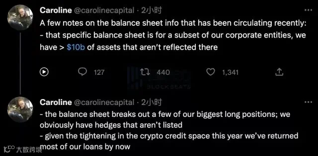 网传版资产负债表仅列出了 Alameda 几个最大的多头头寸,但 Alameda 显然有其他对冲资产。鉴于今年加密信贷空间的收紧,Alameda 现已归还大部分贷款