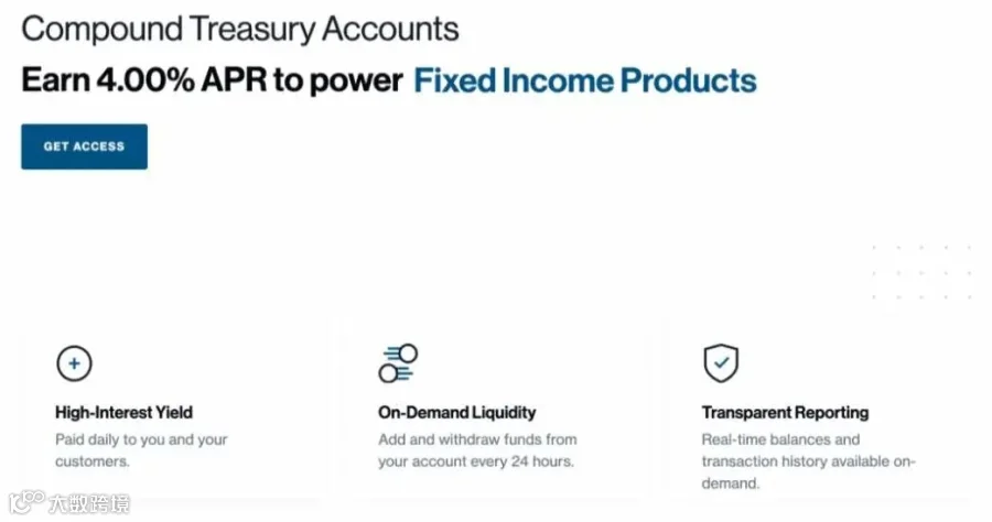 诸如 Compound 前阵子经过数月的客户和监管合规研究,根据金融机构的需求构建 的Compound Treasury,目前已经开始接纳客户,可以提供稳定收益的利率产品。