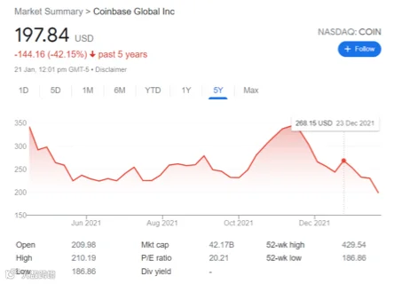 Coinbase股价走势