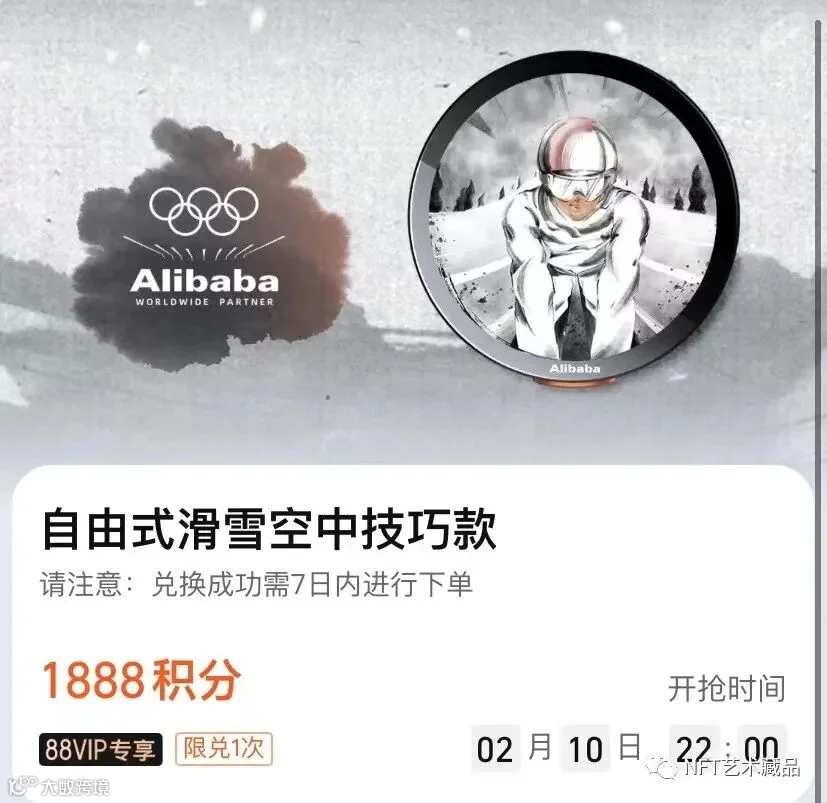 阿里巴巴奥运云徽章 ‘自由式滑雪空中技巧款’ 数字藏品将于10号22:00开启兑换。