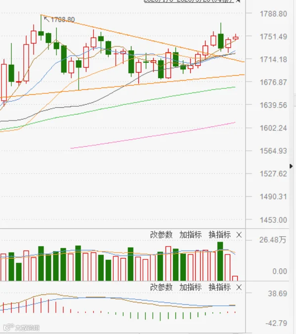 原油上冲到35美金一带受到较强压力,因原油减产预计短期带动价格持续反弹,技术上看短期在35美金一带受到60日均线压制,短期将在32-35美金一带震荡,MACD指标显示多头趋势,预计后市原油价格将继续震荡上行。
