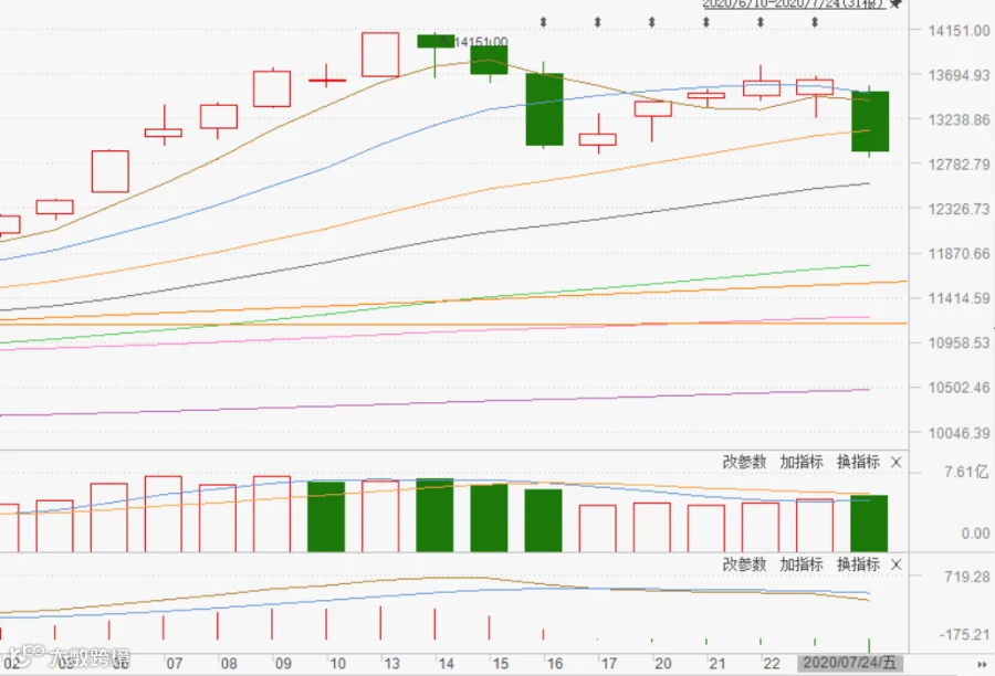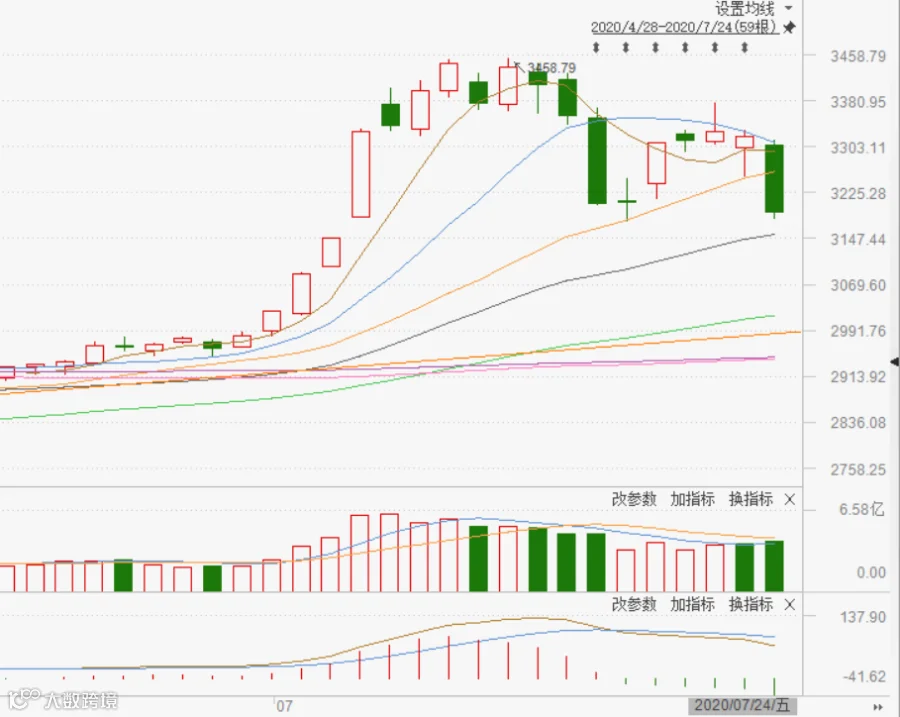 今日三大股指低开,震荡后重心继续下移,近午间市场再下一层,午后仍旧延续跌势,创业板指盘中跌幅过6%,深成指也下跌过5%,尾市虽有小反弹出现,但力度微弱,全天呈单边下跌之势。个股方面,仅军工、猪肉、黄金以及部分化学制药等表现强劲,白酒、证券、免税店以及半导体等处跌幅前列。从盘面观察,消息面的影响引发了今日的下跌,同时也是市场对于上涨乏力的一种修复表现。