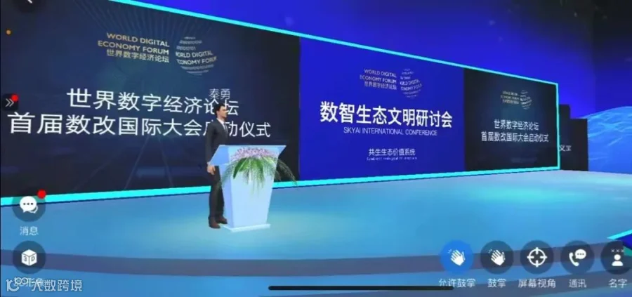 2022年5月27日,在沃达福元宇宙会展中心举办的世界数字经济论坛首次数字会展专题研讨会,也采取了线上+线下的模式,通过元宇宙会展让观众体验了科技的力量。进入元宇宙会场,参观者就拥有自己独立ID身份,并在人物头顶上方显示。线上展会在布局方面仿照线下展会形式,有展台、道路和进入会场的多位虚拟人物,身边就是一个个展厅,而且通过地图功能,可以更快的到达指定展厅。参会厂商把产品通过三维模型,在展厅中以3D立体的形式呈现,让观众能够直观看到产品。在展会里也能实现多人在线实时语音沟通,还能通过虚拟人物走进直播间,在直播间观看直播。