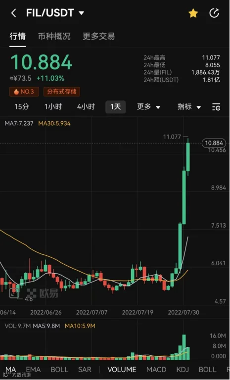 这几个交易日,FIL成为了市场最靓的仔,以90度的涨幅直接涨了一倍,这么大的体量,只可能是机构资金所为。这从侧面可能说明一个问题:机构资金认为FIL的上一个叙事逻辑结束,在可编程虚拟机落地的前几个月提前入场布局,进行洗盘,静待虚拟机生态叙事逻辑的开启。
