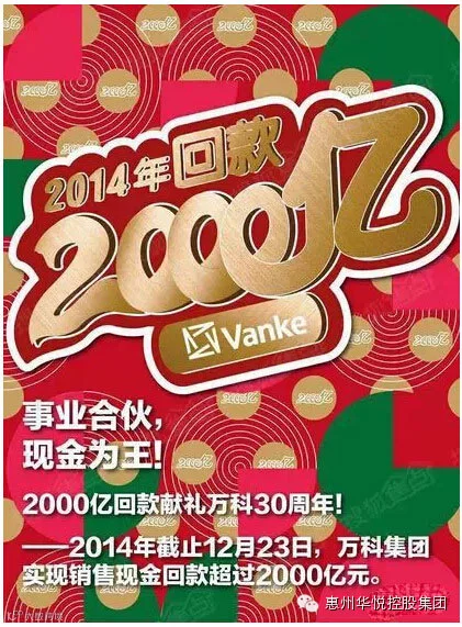 万科微信公号于2014年12月23日推送郁亮撰写的《勇敢探路坚定转型--致万科全体同仁的一封信》中提及,23日当天万科已经完成年度回款2000亿元。然而,截至9月30日,万科经营活动现金流入总额只有1135亿元。万科是怎样在一个季度不到时间里,回款将近900亿元的?