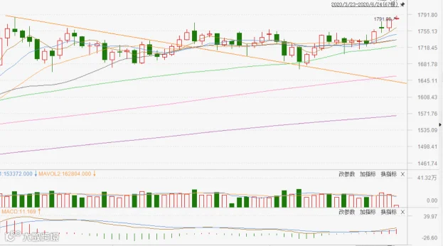 1755美金一带箱体顶部突破,日线显示形成均线多头排列趋势,预计后市保持向上的走势,后市做多为主。