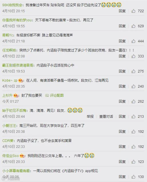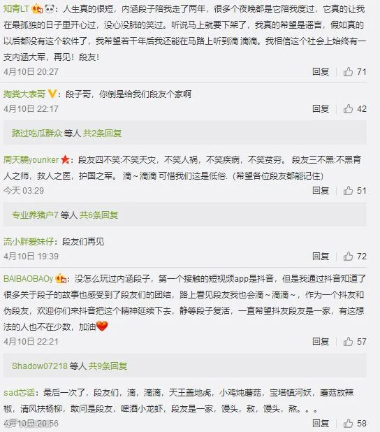 内涵段子创立于2012年,并且内涵段子APP衍生出了段友、段友暗号、内涵段子车贴等段友文化。2017年,内涵段子的注册人数已经超过2亿了。最重要的是内涵段子APP已经成为许多网友的日常观看的短视频APP了。因此,当内涵段子被广电总局责令永久关闭的时候,网友们是这样的。
