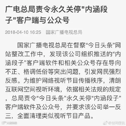 身为一个佛系的小编,今早刷微博的时候发现,内涵段子APP被广电总局责令永久关停。