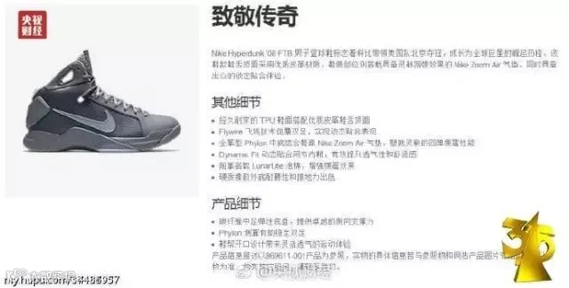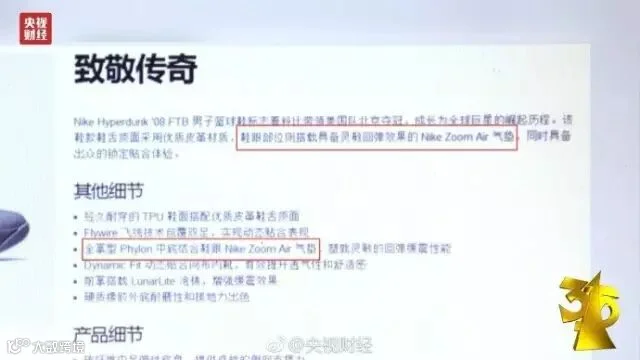 2016年4月,耐克篮球官方微博发布了一条消息,NBA球星科比布莱恩特,2008年北京奥运会夺冠时所穿的一双耐克篮球鞋复刻版,将限量发售。耐克在中文官网上宣称,这款鞋后跟带有耐克拥有专利的zoom air气垫。但消费者穿上这双鞋后,觉得硬的有点不对劲。面对消费者的追问,耐克的客服人员承认了一个惊人的事实:这款鞋后跟确实没有气垫!对此,耐克给出的回应只是,产品描述失误而已,可以全额退款。然而消费者质疑,这难道不是“虚假宣传”?
