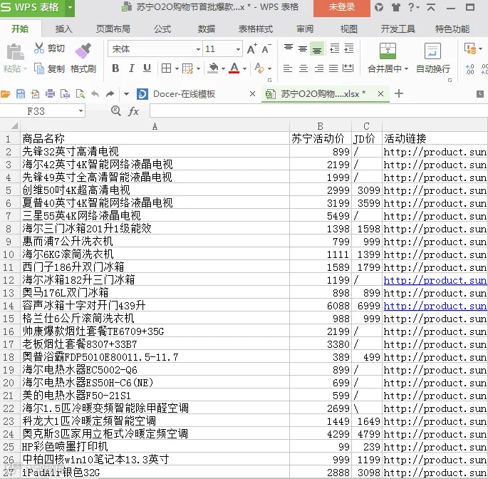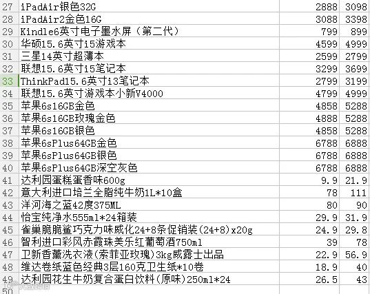 我挑一个人人关注的产品给你放大截图,只为告诉你,这张表,是苏宁O2O购物节的内部资料,而且还是没上线的终极价格大招,被提前泄露了!