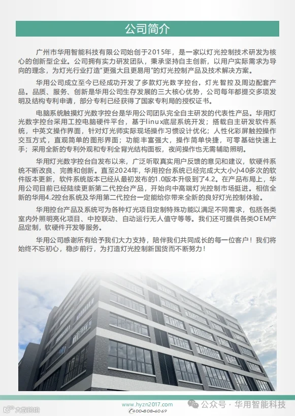 华用公司感谢所有给予我们大力支持,陪伴我们共同成长的每一位客户!我们将始终不忘初心,稳步前行,为打造灯光控制新国货而不断努力!