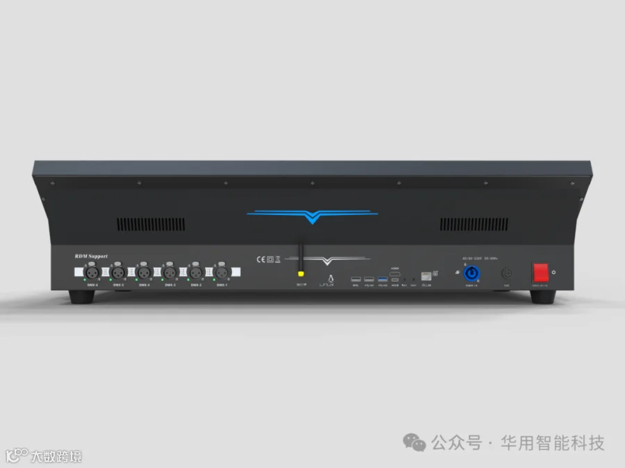 输出线路:一个标准Art-Net输出口,可以同时输出24条DMX线路,标配6个光电隔离标准DMX输出口,支持网络/USB方式扩展至24个DMX输出口