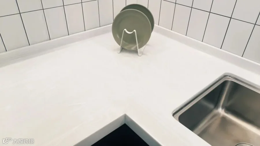 项目是奥德康家居展厅,打造一个即摩登又实用的厨房空间,希望使用自然石材呈现简约高端的效果,同时又想避免易碎和维护繁琐的问题。
