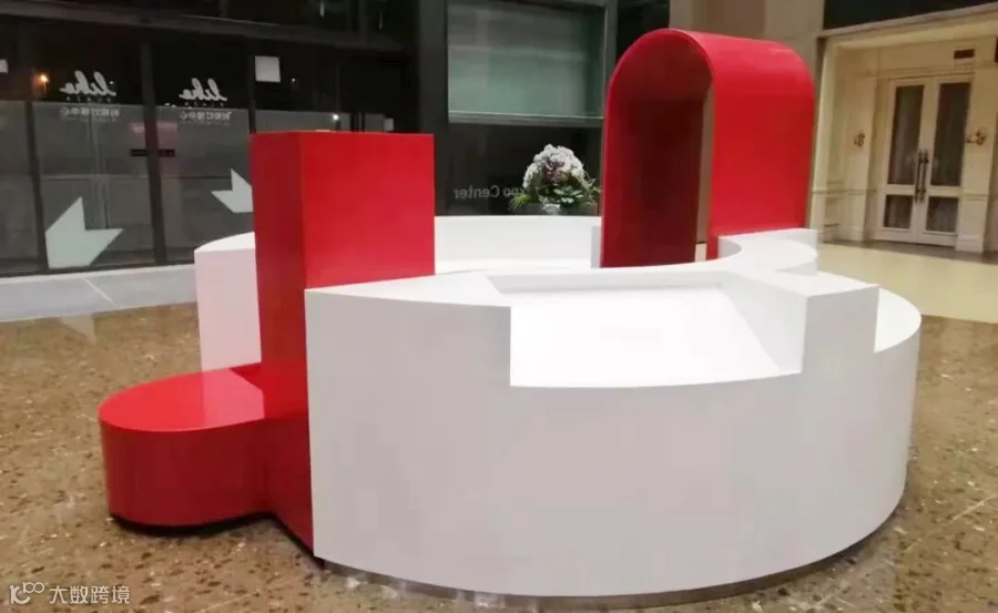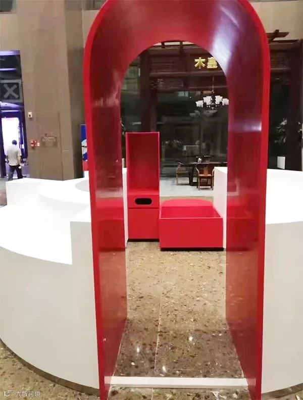 用MA1101雪白与MA1107火红打造的大厅咨询台,形状特异富有戏剧化,颜色搭配引人注目,无疑是整个商场的视觉中心点,表面呈现光滑无暇的完美质感,作为交流平台最好不过了。