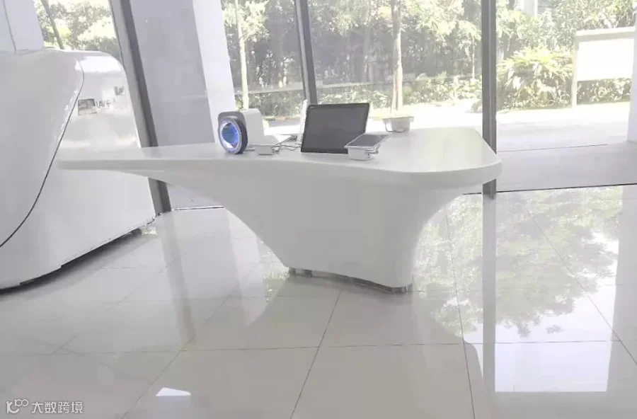 作为定位专业高端的商业空间,卫生清洁度都是至为重要的基础一环,人造石具有强大的抗污能力并易于清洁。人造石打造异形多功能操作台,完全满足其清洁度需求。