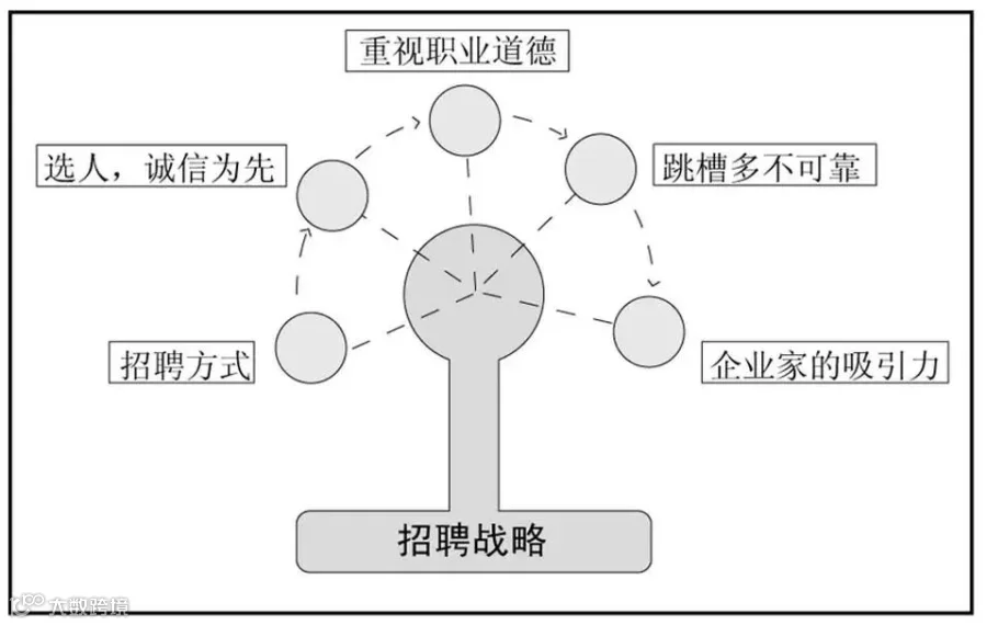在阿里巴巴,价值观是决定一切的准绳,招什么样的人,怎样培养人,如何考核人,都坚决彻底地贯彻这一原则。