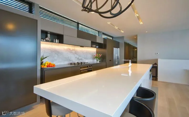 每个人的梦想家里,都期望能拥有一个宽敞的中央岛台,以Koris®NW5815山涧人造石打造较大面积的台面,犹如大理石般富有气势,表现出非凡的整体感,运用在柜体上相结合,表现出强大的层次感、空间感,营造出独特的视觉享受。