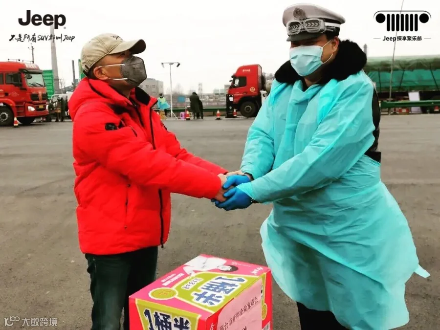 更有深圳骏驰和邢台英龙探享聚乐部紧随其后,集结Jeeper在当地为抗疫前线的医护人员送去各类物资。