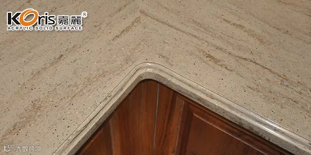 (5)易加工,无缝拼接;人造石的硬度和韧性已调整到一定范围。房间可以像做硬木一样加工,凡是木工用的工具和机械设备都可以用于人造石材的制作加工,可粘接(利用专用胶水,各种台面均可接得“天衣无缝”),可弯曲,可加工成各种形状,这是天然石材无法比拟的。
