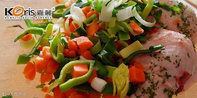 (4) 结构致密,易清洁;人造石材结构致密,无微孔,液体物质不能渗入,细菌不能在其中生长,故有人称其为“抗菌石”也有其道理。而天然石材存在着天然微孔,在做橱柜的台面时,菜汤等营养物质易渗入其内,滋生细菌。