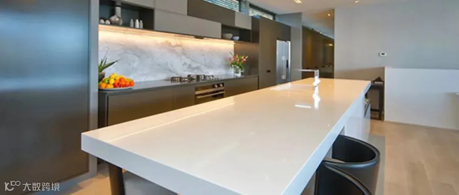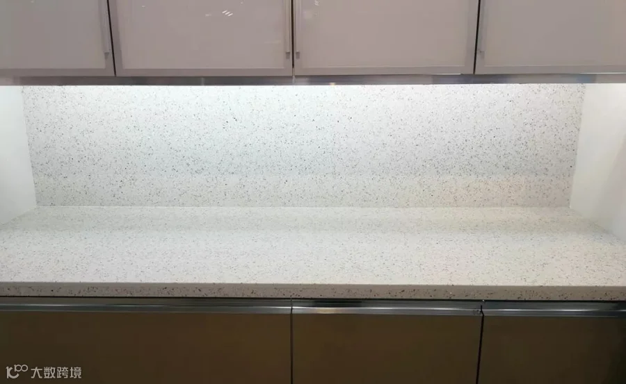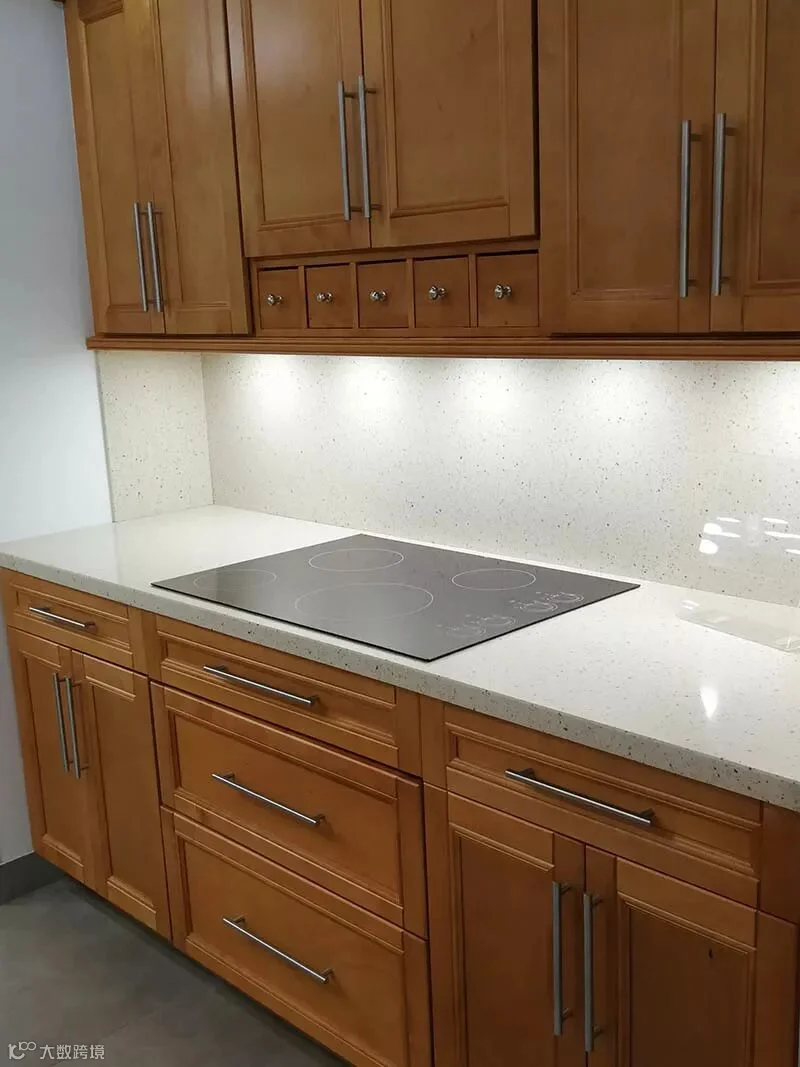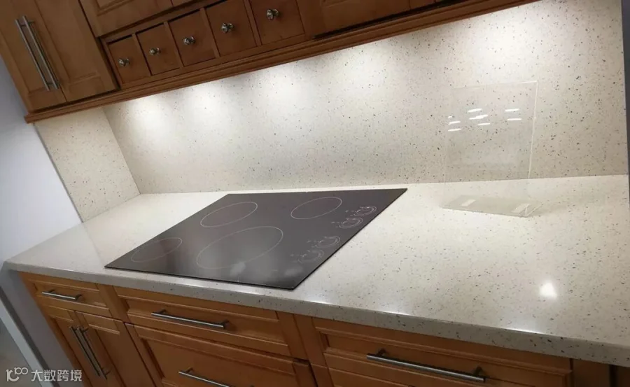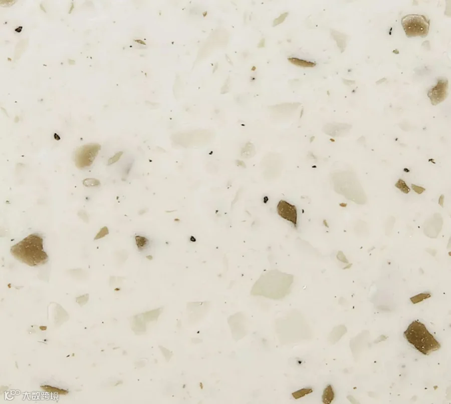 远看纯净素雅是白色,近看其中有棕色系的碎片互相交错,色彩柔和,犹如玉石般,非常具有艺术感,让人感到舒适自在。无论是厨房台面还是小柜台的台面,都十分耐看实用。