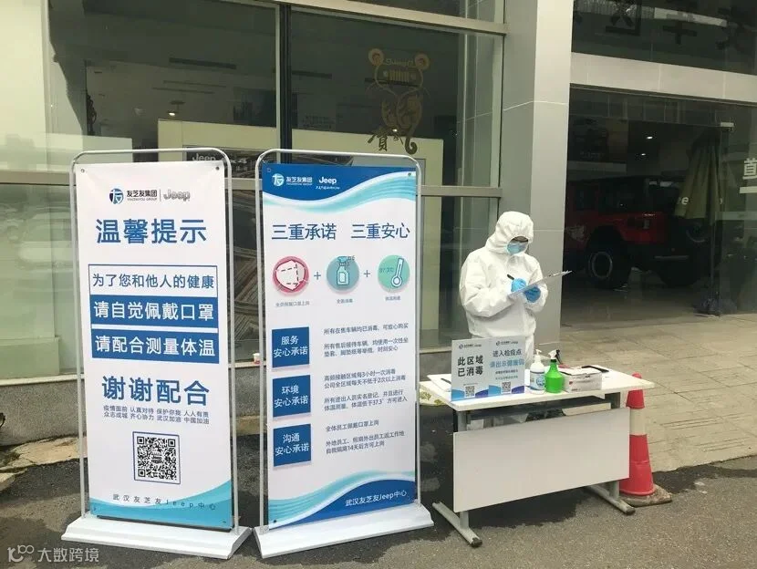 广汽菲克始终将保障员工的健康安全放在首位,为实现复工复产期间“零感染”,广汽菲克旗下经销商出台了多项协同联动的防疫措施。以武汉友芝友店为例,通过打造出一套严格全面的防护体系,为到店消费者及销售一线员工的安全健康提供坚实保障。