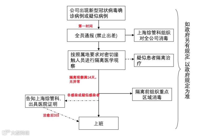 进入公司前,按照各部门上报名单,在一楼大堂进行登记并测量体温,不在名单者或超过体温 37.3°C(额温)者,不能进入,并按照公司流程上报处理;