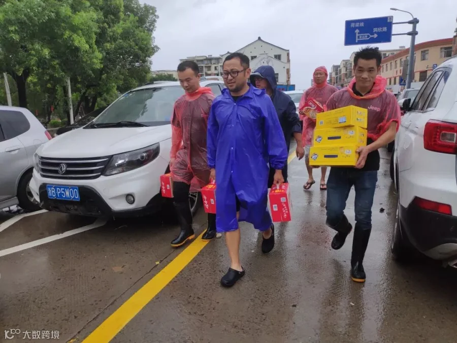 在一个工业园区,厂房被淹,但在救援的过程中,队员们发现有漏电情况,出于安全考虑,只能撤退等待专业消防队员前来支援,虽然没帮上什么忙,但园区负责人还是坚持买来红牛等补给食品,感谢救援队的热心相助……