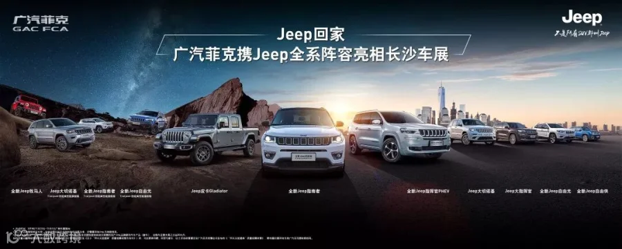 包括刚刚在广州车展上市的刷新颜值上限、性能全面升级的全新Jeep指南者夜鹰版;第一次与世界“来电”的全球首款Jeep新能源车型——全新Jeep指挥官PHEV;敢于重树中型 SUV 性能标杆的新自由光2.0T;全球SUV偶像级车型全新Jeep牧马人;以过硬实力大胆探索人生的2019款全新Jeep大切诺基,酷·劲驾临,深受行摄达人钟爱的全新Jeep自由侠1.3T。Jeep全新产品阵容以专业实力再度诠释“不是所有SUV都叫Jeep”。