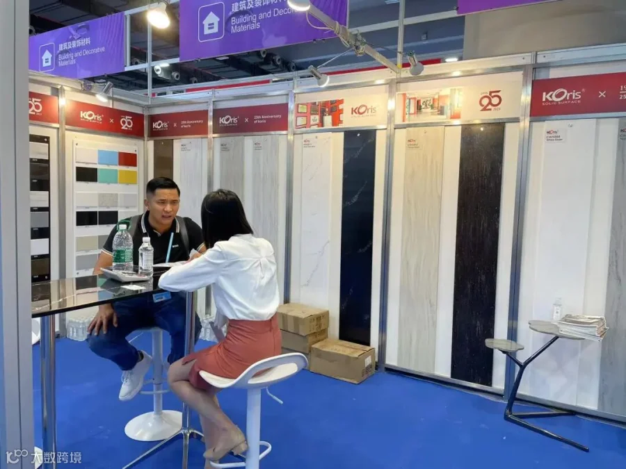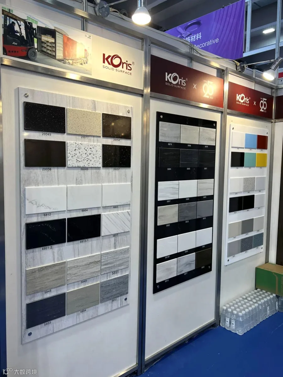 本届广交会Koris展示了全新花纹板亚克力人造石系列,一种通体一致、无孔质密、质地均匀的表面材料,具有无与伦比的可塑性。
