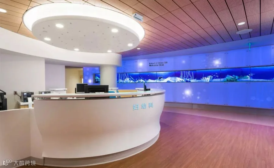 辽阔的天空蓝,明亮、安详洁净,有安定情绪的效果。在医院空间增添一抹天蓝色做装饰,为室内空间添加一道舒适的风景线。