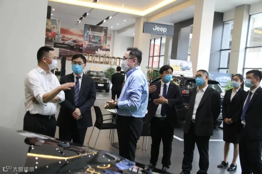 在Jeep苏州天驰新宇店,严壮立与江苏乾融集团董事长叶晓明、江苏天驰集团总经理张翔进行交流,认真听取了来自市场一线关于产品质量的建议、当前面临的挑战,并给出重要指导意见。
