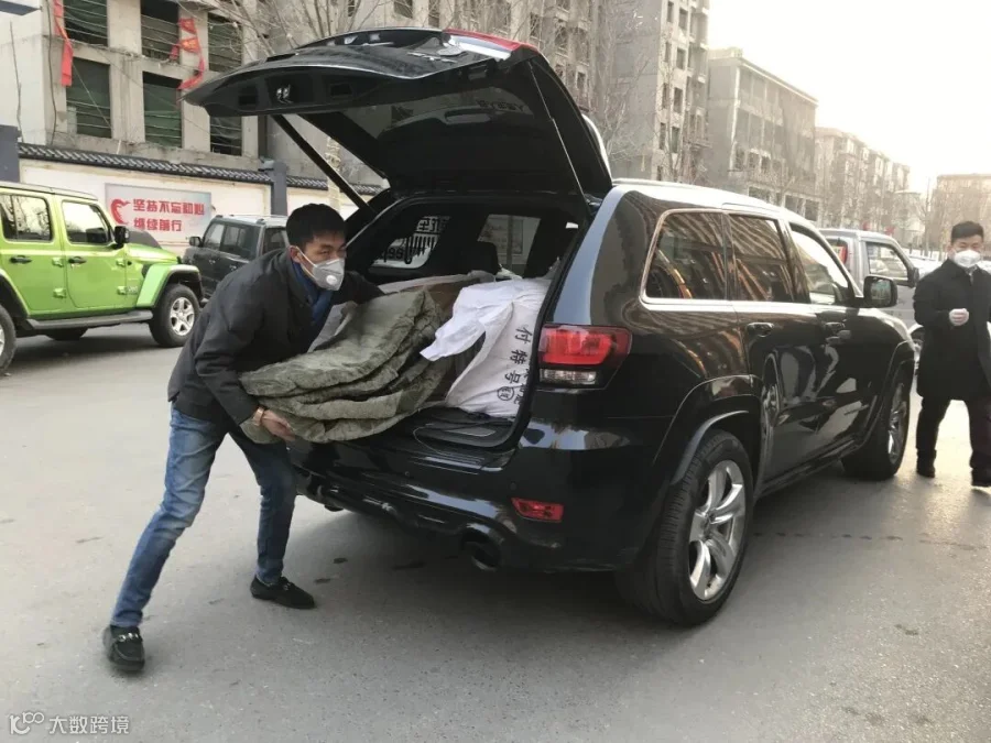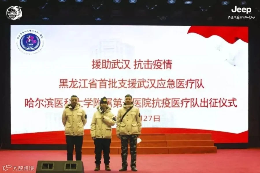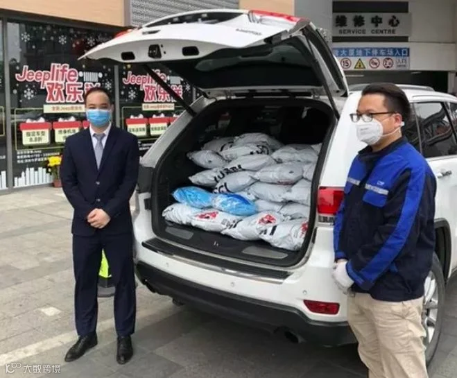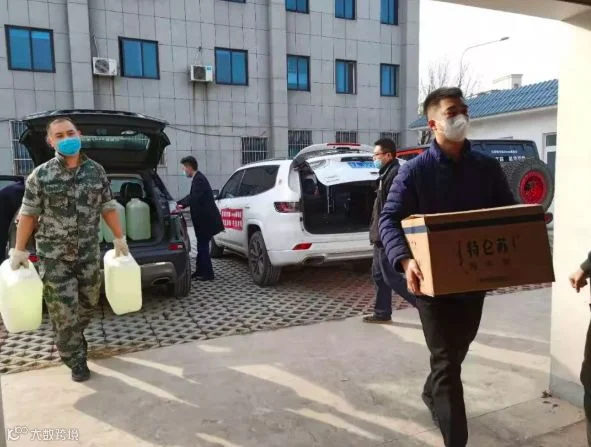 与车主代表狼哥、九哥、刘舜等一起为哈尔滨防疫指挥部捐赠3000斤消毒酒精