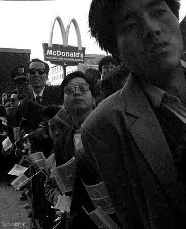 1992年4月23日,北京的第一家麦当劳在王府井开业,它是当时世界上面积最大的麦当劳餐厅。开业当天,这个拥有700个座位、29台收银机的地标性餐厅就吸引了4万多名顾客。同样的情景出现在1990年,中国内地第一家麦当劳餐厅在深圳开业,那时所有的餐牌都用港元标价,消费者们揣着500、1000港元前来,10个10个地买下巨无霸。