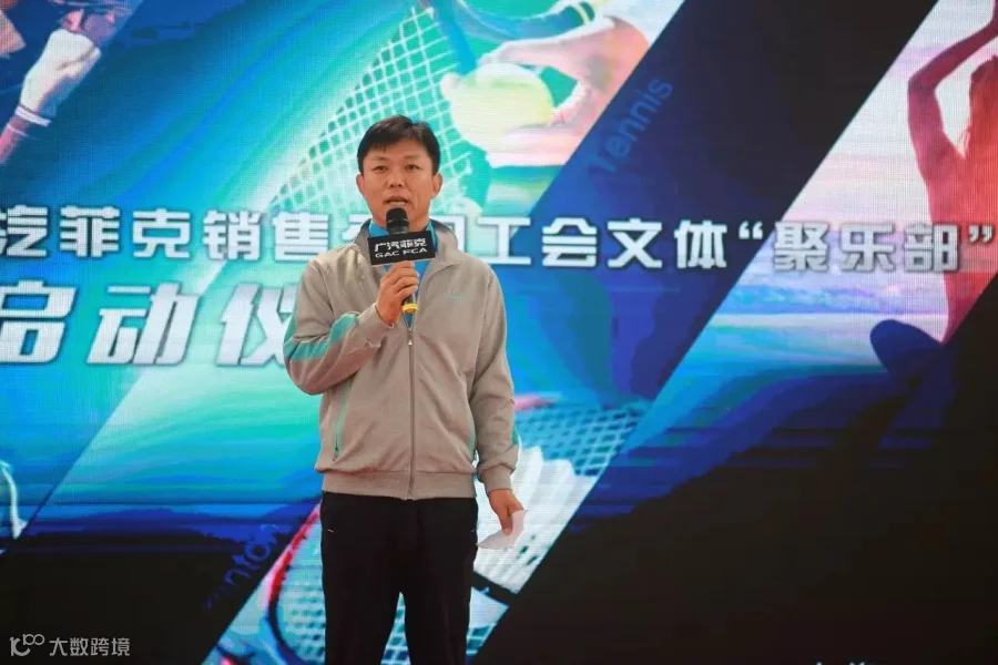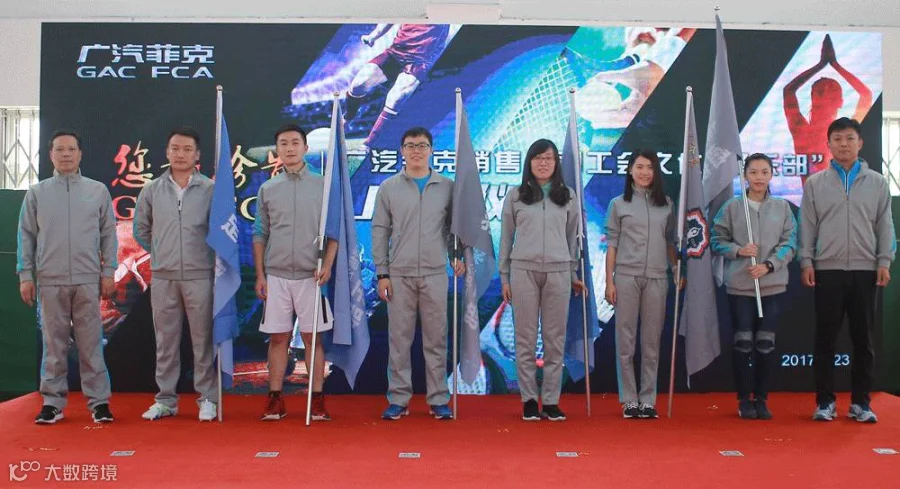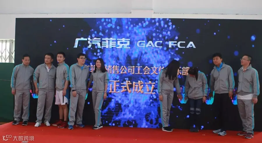 授旗环节后,三位领导与六位俱乐部社长共同按下大屏幕上的启动按钮,标志着广汽菲克销售公司工会文体俱乐部正式成立啦!