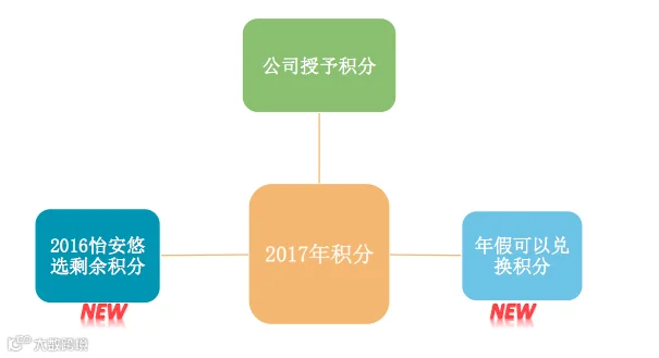 除了可以将怡安优选剩余积分转入2017年弹性福利积分账户外,还可用2016年剩余年假兑换弹性福利积分,每人最多可兑换2天。具体积分明细,在注册开始后伙伴们就可以登录查看啦。
