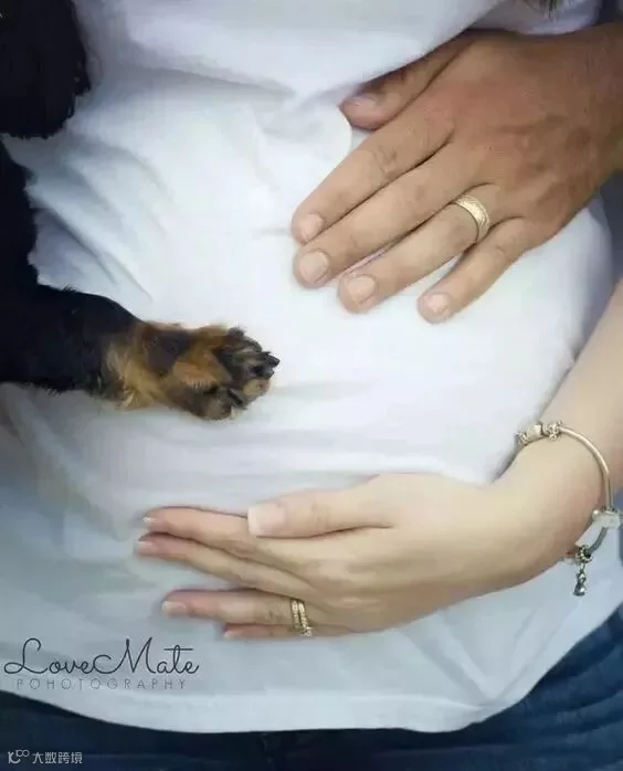 完美的借位,爸爸化身霍比特人,托起妈妈巨大无比的肚子。