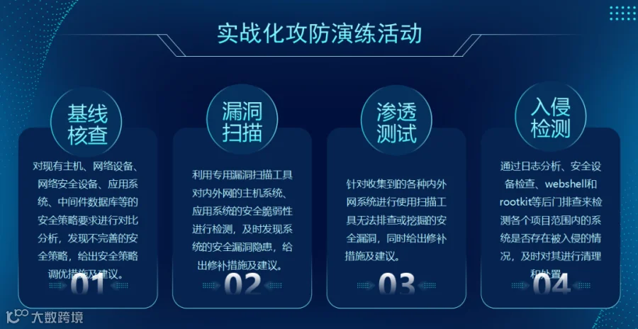 实战化攻防演练活动是以全国范围内真实网络目标为对象的网络攻防实战演练活动。主要针对各大企事业单位、部属机关,大型企业等国家关键基础设施,一般持续时间为2-3周。演练通常是以实际运行的信息系统为保护目标,通过有监督的攻防对抗,最大限度地模拟真实的网络攻击,以此来检验信息系统的实际安全性和运维保障的实际有效性。