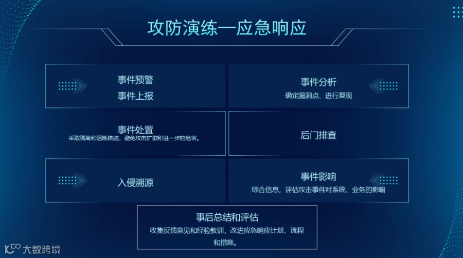 实战演练结束后,需要对在实战工作完成后应进行充分、全面复盘分析,总结经验、教训。应对准备、预演习、实战等阶段工作中各环节的工作进行全面复盘,复查层面包括工作方案、组织管理、工作启动会、系统资产梳理、安全自查及优化、基础安全监测与防护设备的部署、安全意识、应急预案及演练和注意事项等所有方面。