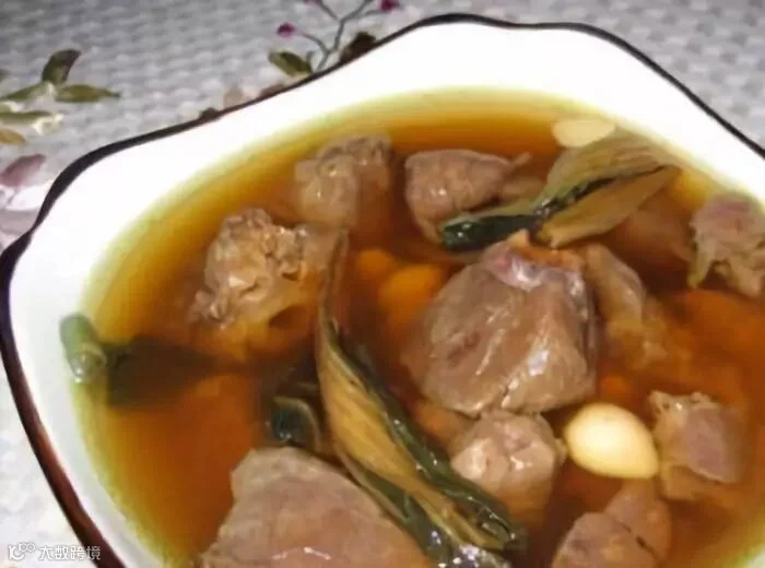 猪肺250克,陈皮10克,杏仁25克,当归25克,肉桂6克,生姜6片。猪肺洗净切为薄片,与洗净之当归、杏仁等一并放入锅内,加水适量一起炖,炖至猪肺烂熟,捞出当归等加入香菜、麻油、味精、食盐适量,即可食用。