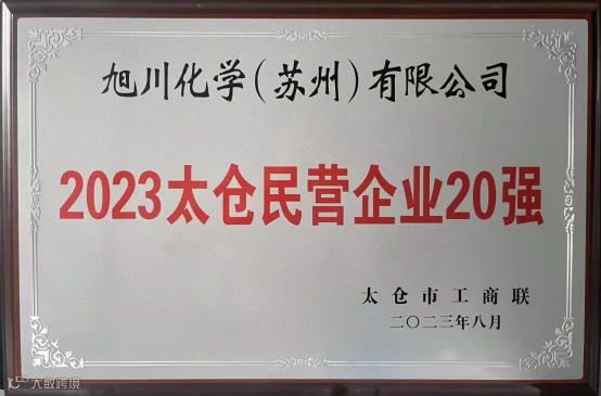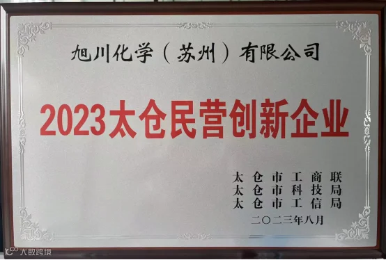 旭川化学(苏州)有限公司荣获2023年太仓市民营企业20强第6名,2023太仓市民营创新企业。