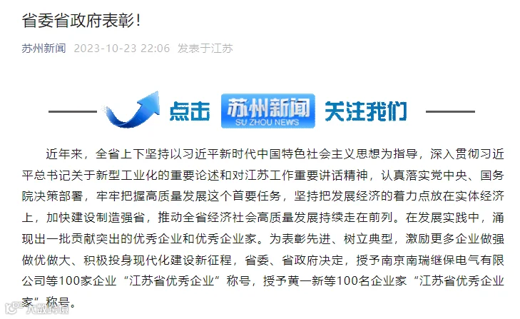 根据《省工业和信息化厅 省人力资源社会保障厅 省工商业联合会关于组织开展“江苏省优秀企业、企业家”评比表彰工作的通知》(苏工信综合〔2023〕379号),经地方推荐、资格初审、专家评审、领导小组审议等程序,2023年10月23日将“江苏省优秀企业、企业家”表彰对象名单予以公示。