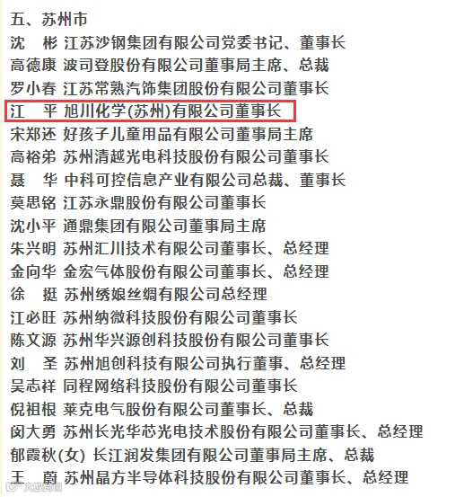 旭川化学(苏州)有限公司董事长江平先生荣获”江苏省优秀企业家“称号