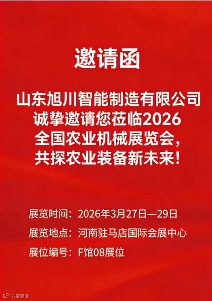 山东旭川智能制造有限公司诚挚邀请您莅临2026全国农业机械展览会,共探农业装备新未来!