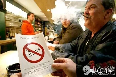 法国:独一无二的“烟警”:全法国的民警、交警及特警中特别任命的烟警有17.5万人之多,他们每日的工作就是在商场、咖啡馆等公共场所巡逻,一旦发现违规吸烟,开出的罚单最高可达450欧元,而对于允许烟民在禁烟范围内吞云吐雾的物业主人,最高可面临750欧元的重罚