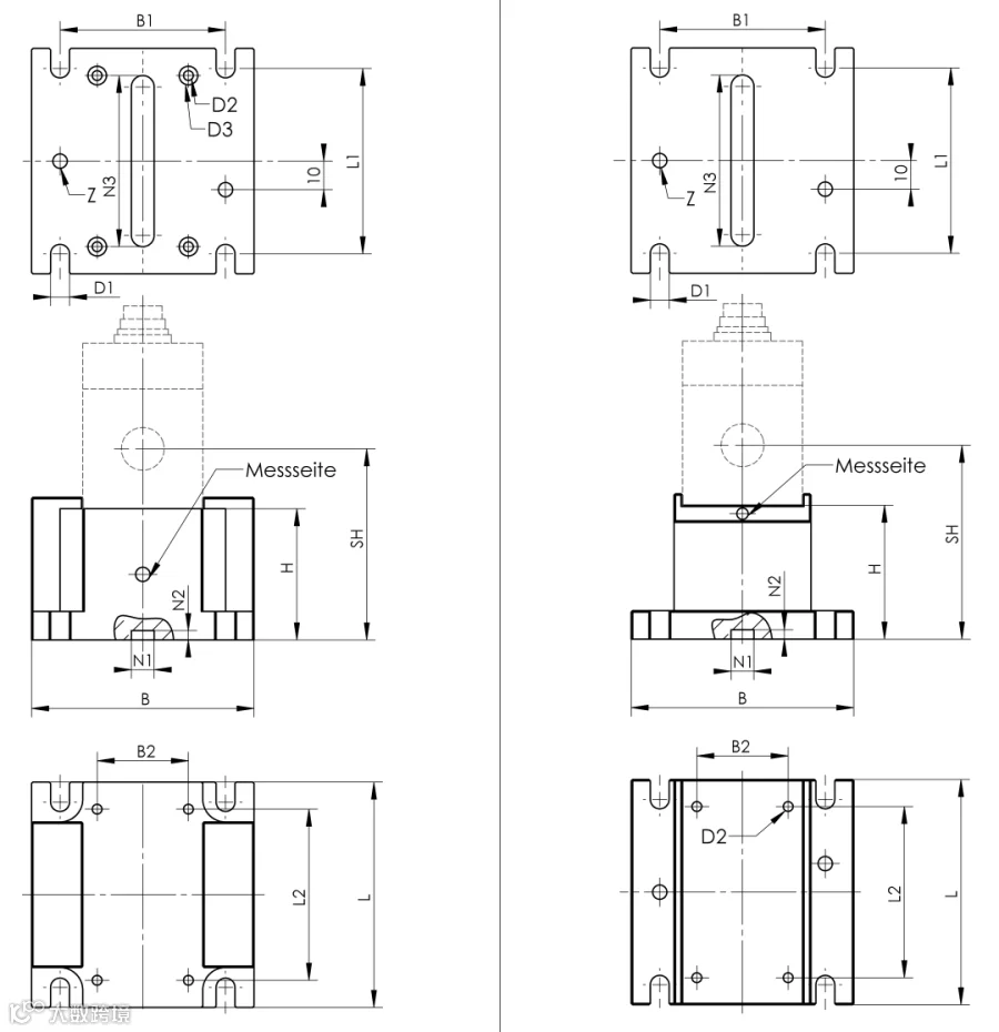● 传感器底座底部带键槽和两侧定位销孔,有助于安装时的精确定位