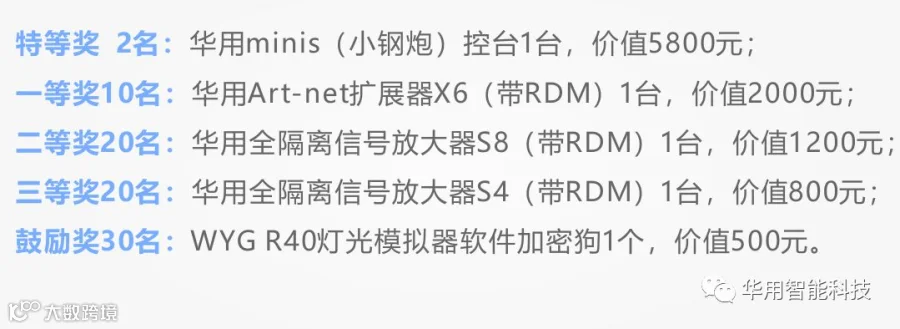 活动期间购买Minis或Mini型号控台,赠送价值800元华用全隔离信号放大器S4(带RDM)1台,外加华用控台全国培训免费名额1个;