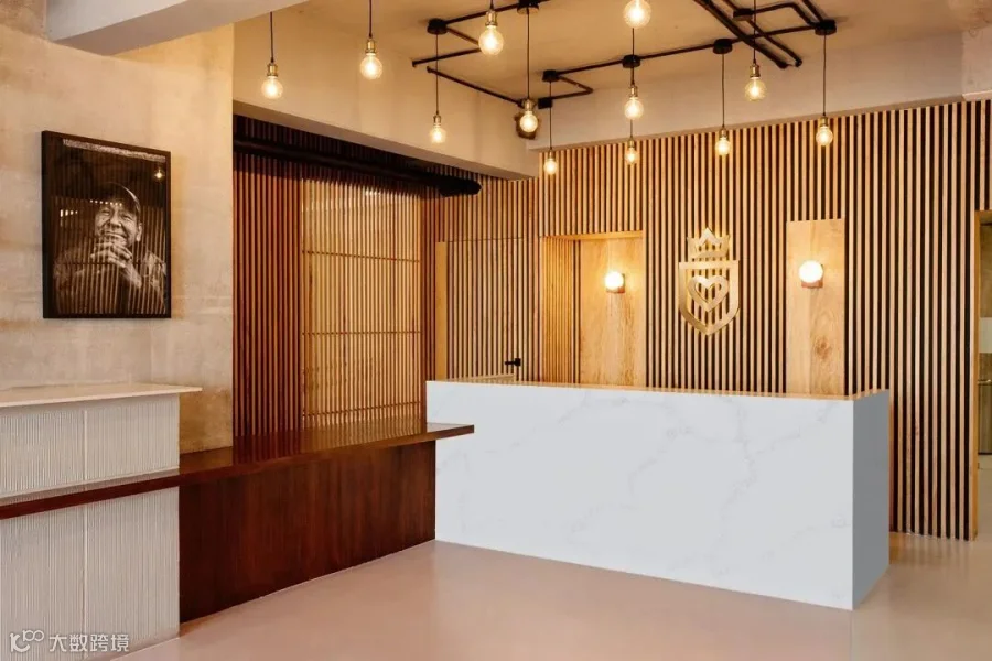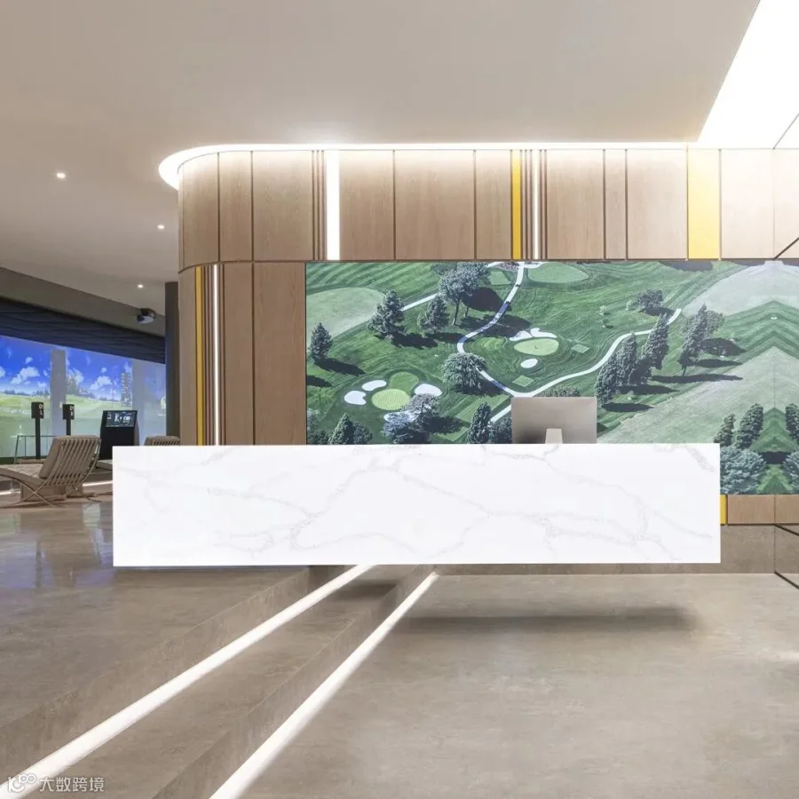 商业的公共场所是一个可以让人们聚会休息的空间,同时也是人们逃离城市喧嚣,享受自由的地方。前台使用白色调的板材纹理,带来视觉上极度的舒适感,温暖惬意涟漪纹理,孕育着内在不凡能量。