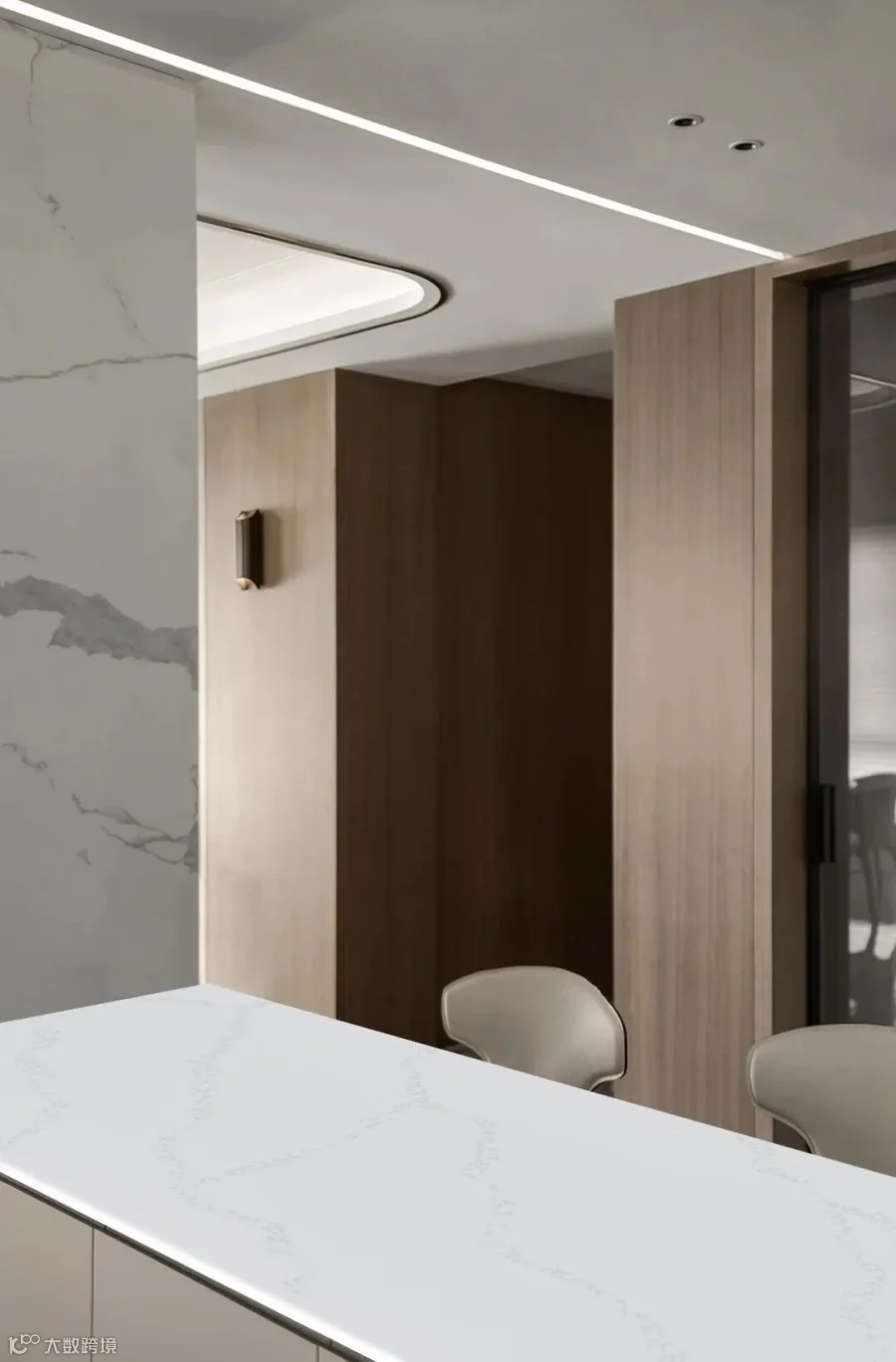 剥离都是的熙来攘往,在白色调的理想居所,开启一段无限梦境,找到内心的滋养时刻。岛台选用优异的材质搭配高超的工艺,温润洁净的白色呼应空间的简约主旨,光滑圆润的材质丰富了空间的层次,也增加了家庭生活的温度。