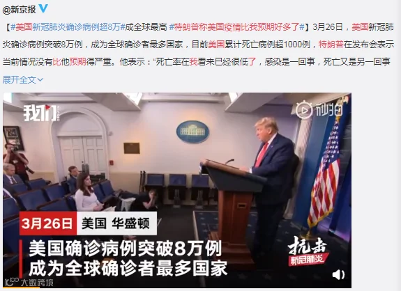 重庆律师:打脸?美国新冠确诊人数超8万人,成全球确诊病例最多国家